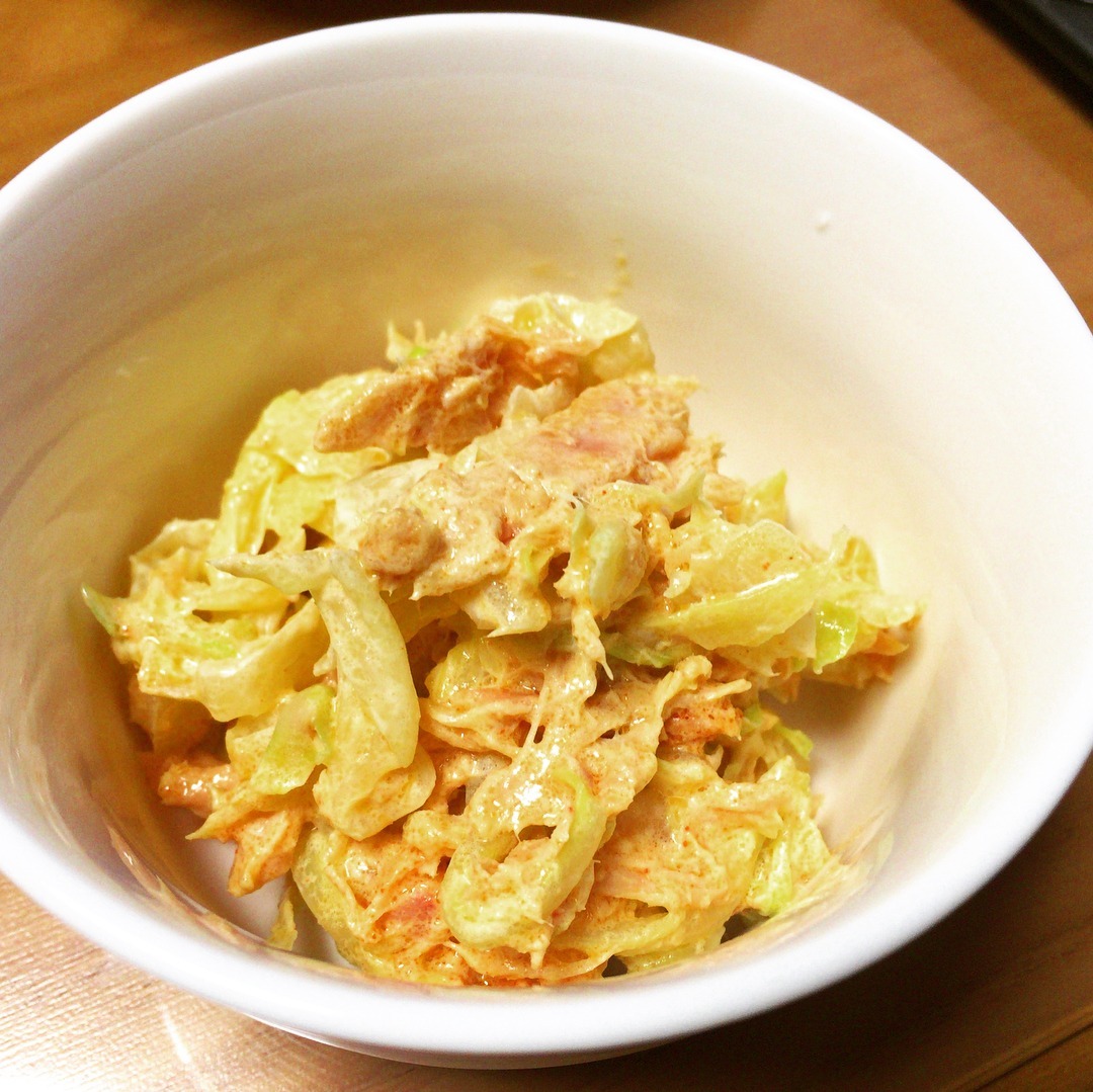 めんツナかんかんとマヨネーズ、1.で千切りにしたキャベツを混ぜ合わせる