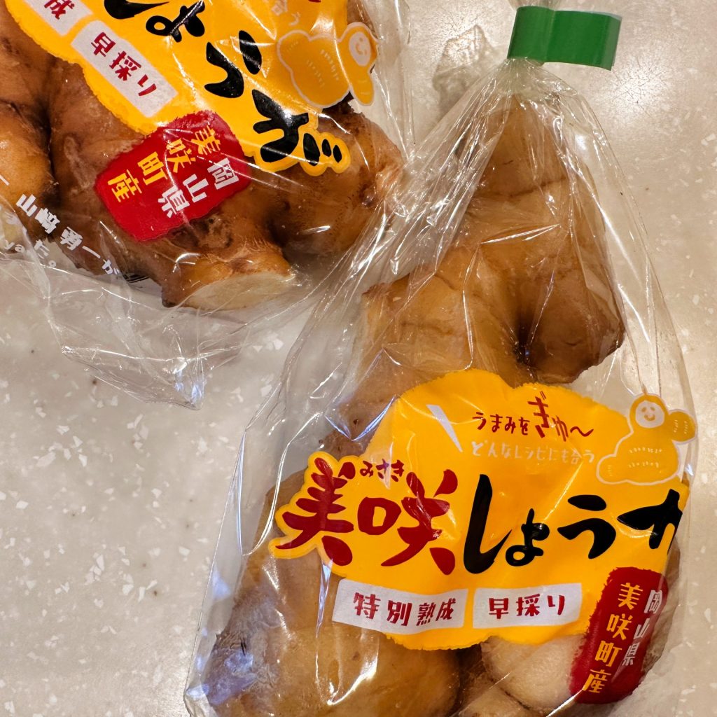 今回、岡山県久米郡美咲町で作られている「美咲しょうが」を使いました。苦みが少なく、香り高いしょうがでした。オススメです。